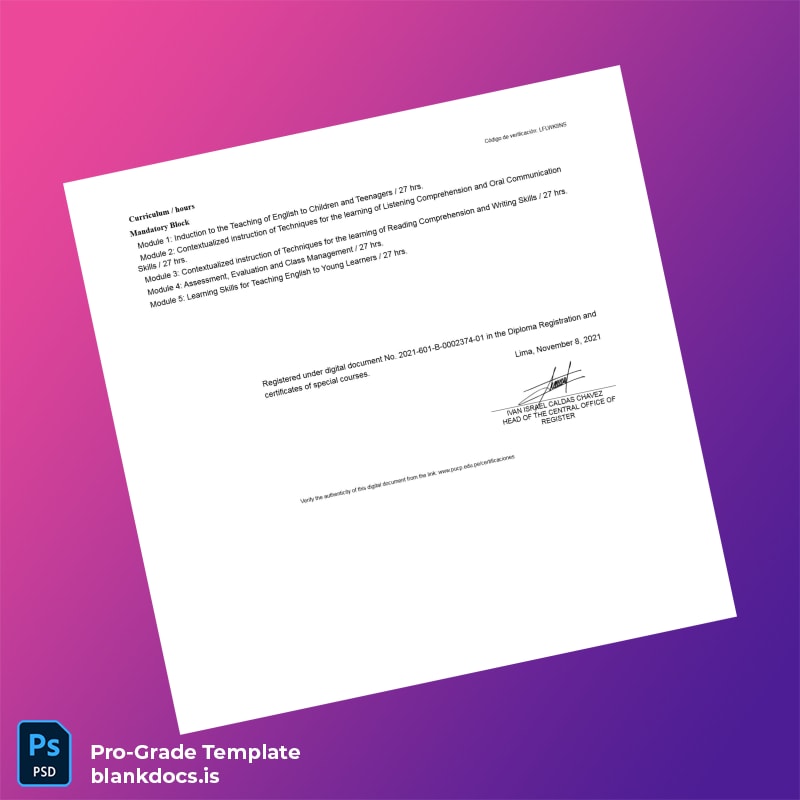 Peru Pontifical Catholic University of Peru Diploma in Study of Methodological Principles for TEFL Children and Teenagers Template (Word & PDF)