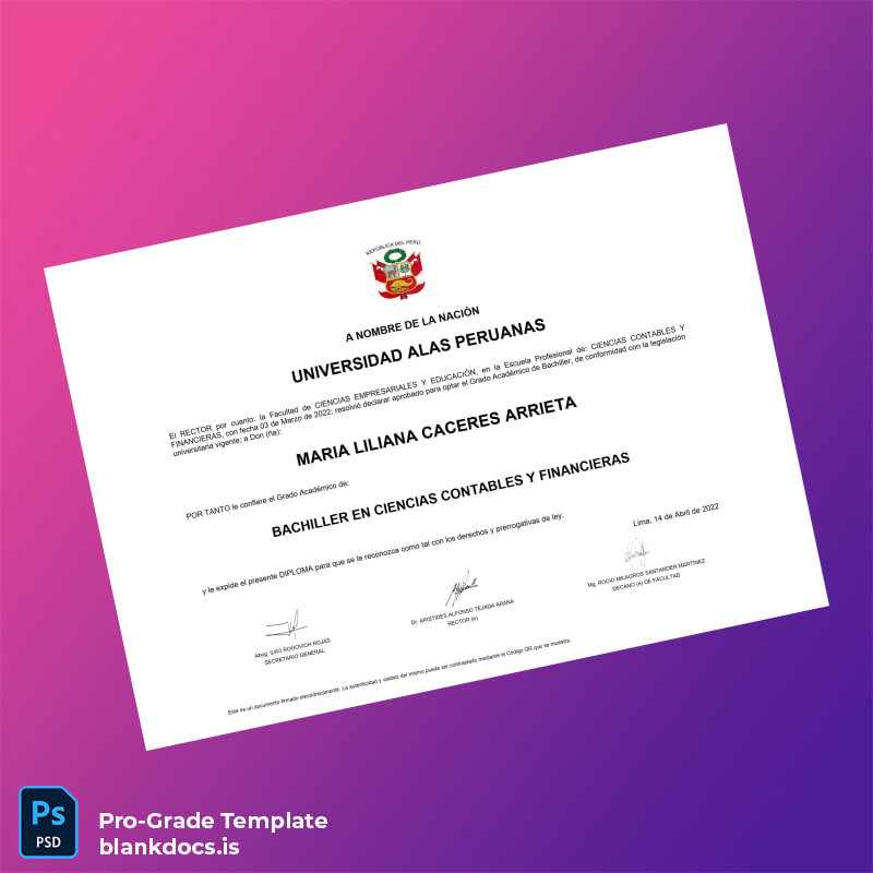 Peru Universidad Alas Peruanas Bachelor of Science in Accounting and Finance Degree Certificate Template (Word & PDF)