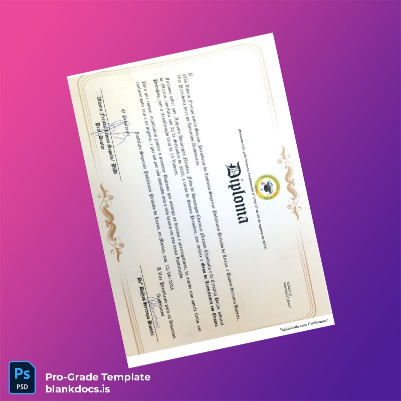 Download and start editing your Portugal Instituto Superior Politécnico Privado do Luena Diploma Template immediately to create professional-grade diplomas that meet your exact specifications and elevate the prestige of your educational credentials.