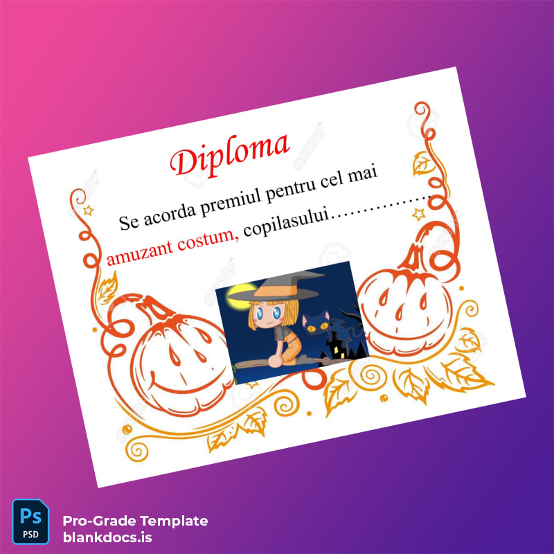 Get the Romania Diploma Halloween Certificate Template (Word & PDF) – a blank, editable diploma template for quick, professional customization.