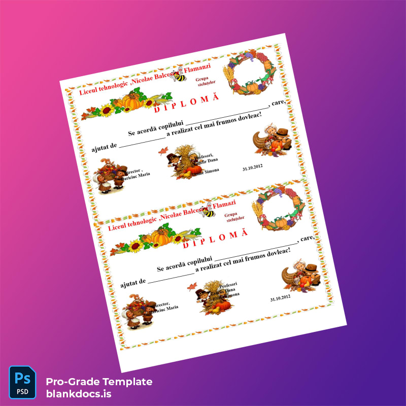Discover the comprehensive and fully customizable Romania Liceul Tehnologic Nicolae Balcescu Flamazi Diploma Template available in both Word and PDF formats. Designed for professionals who require a polished, authentic diplomas instantly, this template offers supreme flexibility and high-quality design precision ensuring your documents meet official standards.