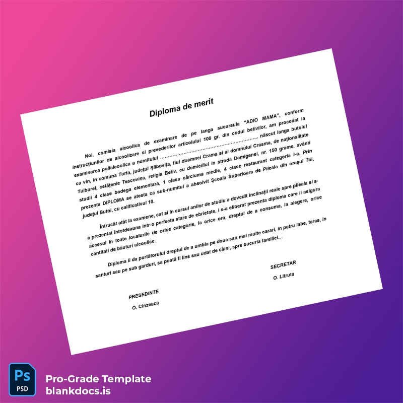 Elevate your certificate creation with the Romania School of Pileală Diploma of Merit Template available in flexible Word and PDF formats. This editable diploma template is designed for professionals who require a pristine, blank diploma form that can be customized to suit various academic or professional recognition needs.