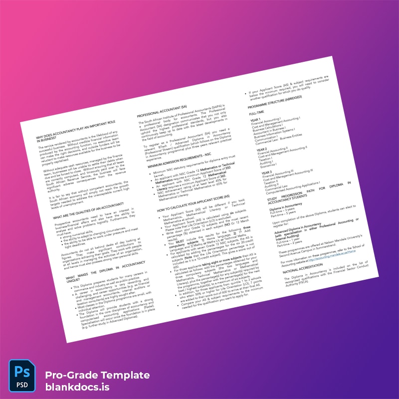 South Africa Nelson Mandela University Diploma in Accountancy Template (Word & PDF)