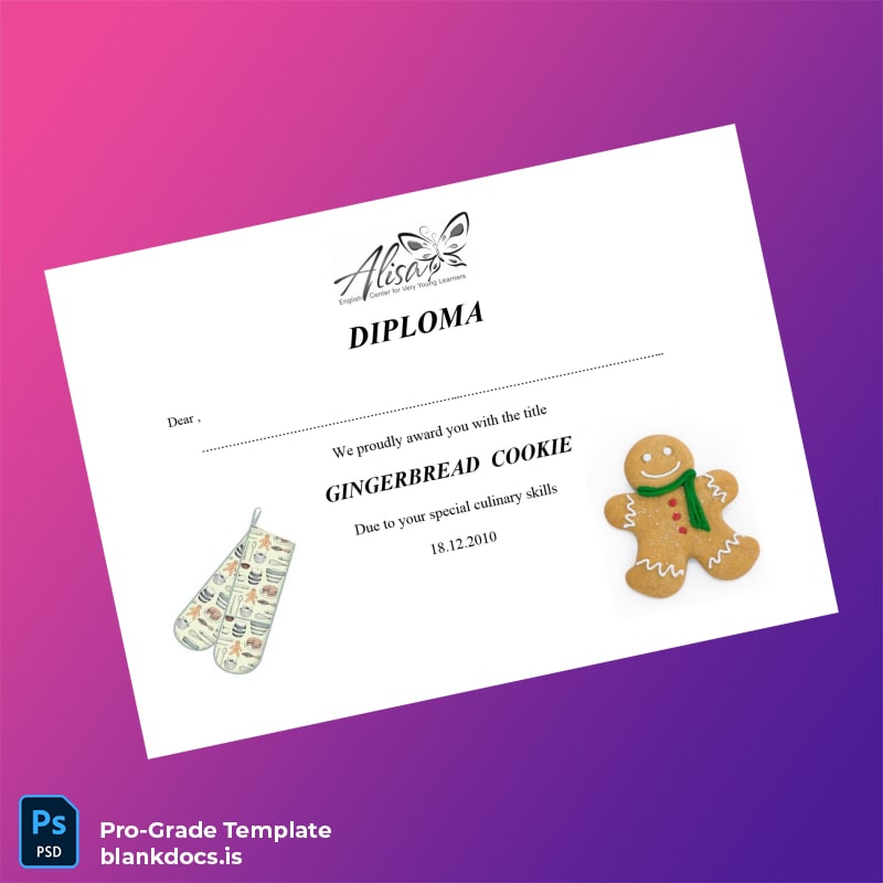 Download your Turkey Alisa English Center for Very Young Learners Culinary Diploma Template now and take full control of your diploma design. The simplicity of our fillable Word template and editable PDF combined with expert craftsmanship results in a diploma that embodies quality and professionalism. Transform your certificate issuing process with a template designed for real-world educational environments.