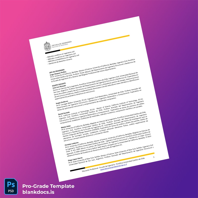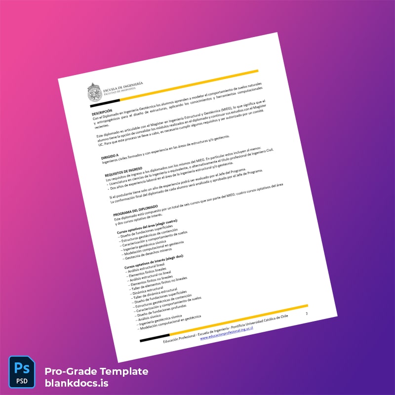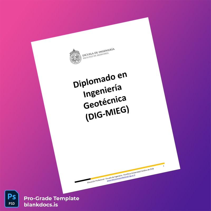 Discover the USA Pontificia Universidad Católica de Chile Diploma in Geotechnical Engineering Template, available in Word and PDF formats, designed to meet the needs of professionals requiring a high-quality, editable academic certificate. This blank diploma form provides a professional, novel design that ensures authenticity while offering full control over every detail.