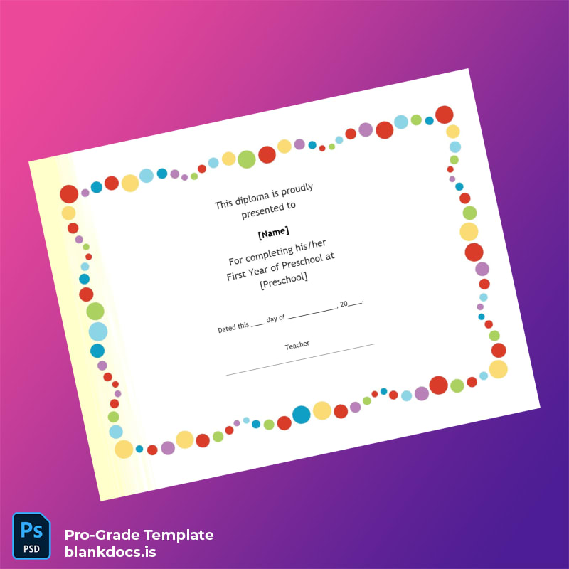 USA Preschool First Year Diploma Template (Word & PDF) Overview