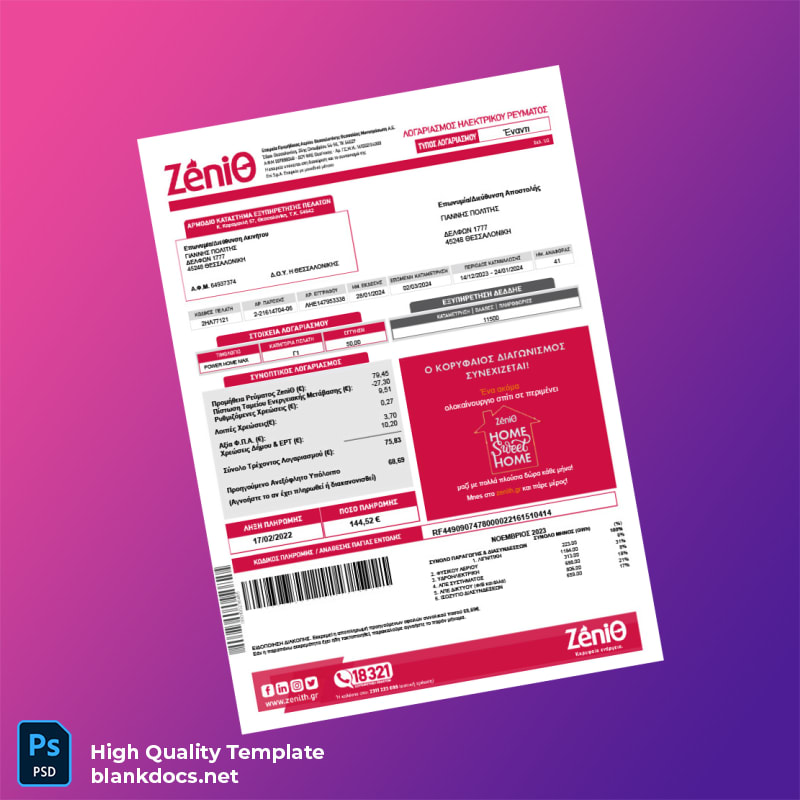 Take control of your document challenges with the Greece Zenith Editable Utility Bill Template. Download your editable utility bill template word and pdf file today and experience a seamless, professional solution tailored to your needs. Discover a broad range of editable utility bill templates available now in our utility bill template category and ensure you’re always ready with the right proof of address.