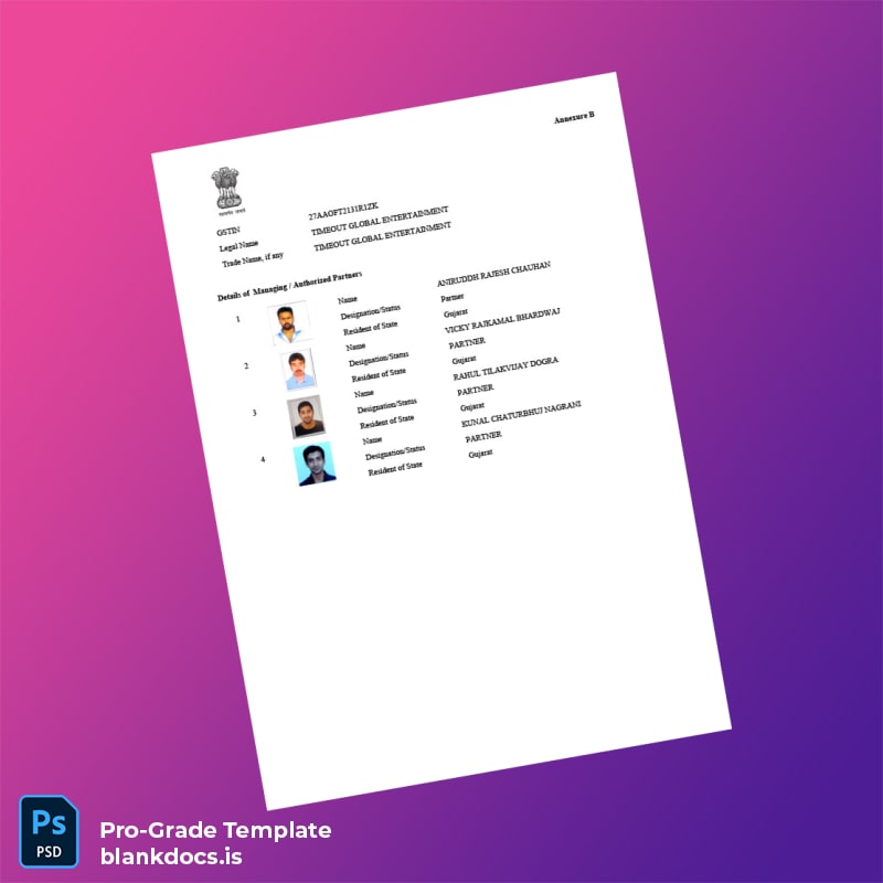 India Government GST Registration Certificate Template (Word/PDF) 3 page