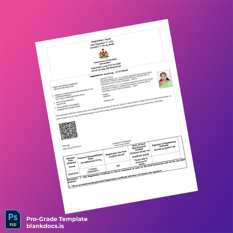 Be the first to review “India Government of Karnataka Registration Certificate Template (Word/PDF)”