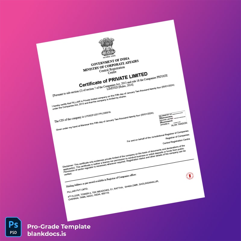 Streamline Your Business Registration with the India Ministry of Corporate Affairs Certificate of Incorporation Template