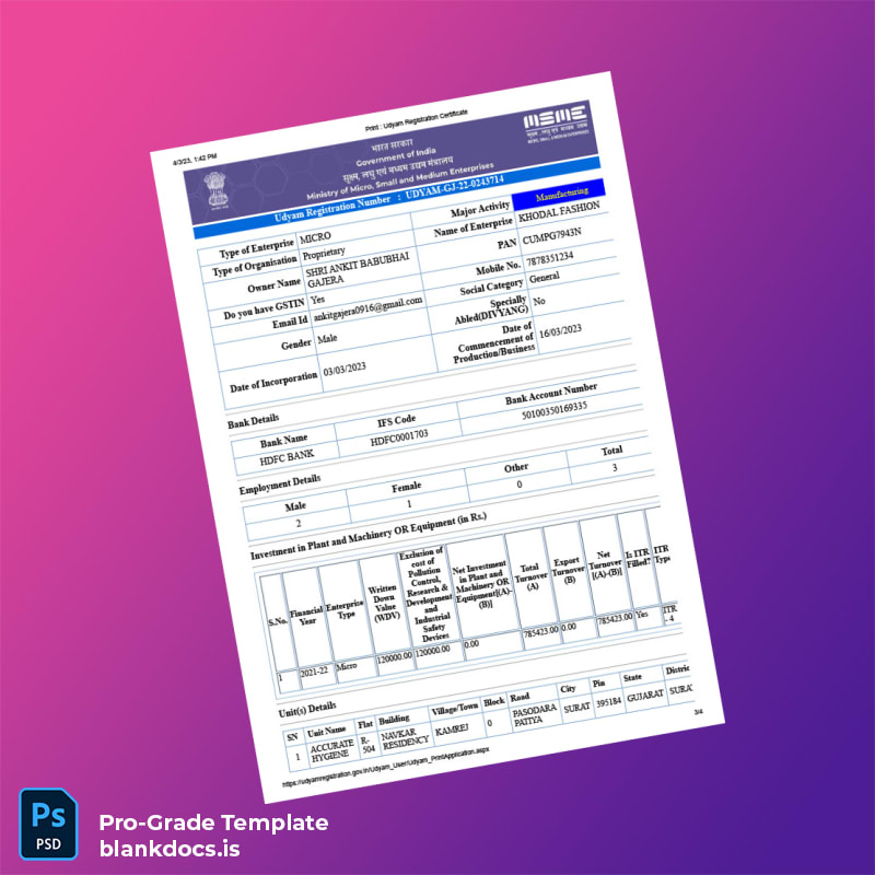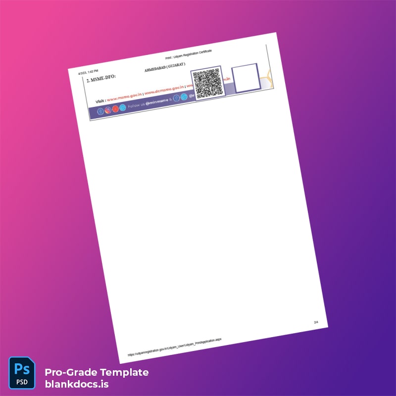 Streamline Your Business Compliance with the India Ministry of Micro Small and Medium Enterprises Udyam Registration Certificate Template (Word & PDF)