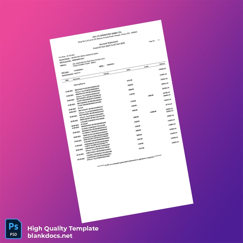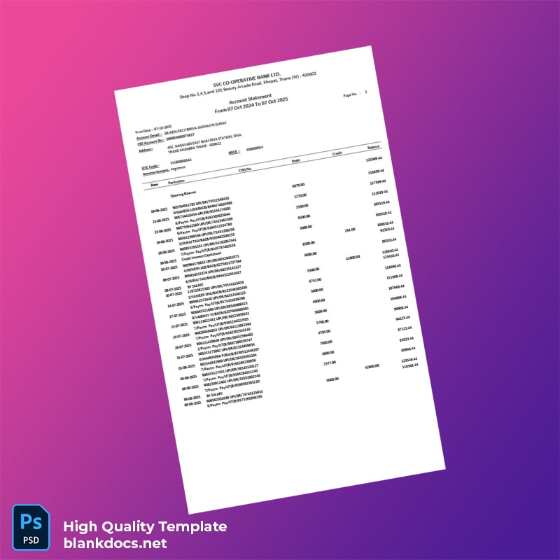 Streamline Your Banking Needs with Our India SVC Co-operative Bank Account Statement Template