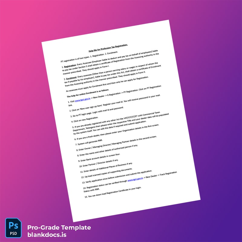 Experience the convenience and professionalism of the India Tax Authority Registration Certificate Template (Word & PDF) and reinforce your company’s legal standing effortlessly. Purchase now to gain immediate access and present your business credentials with confidence.