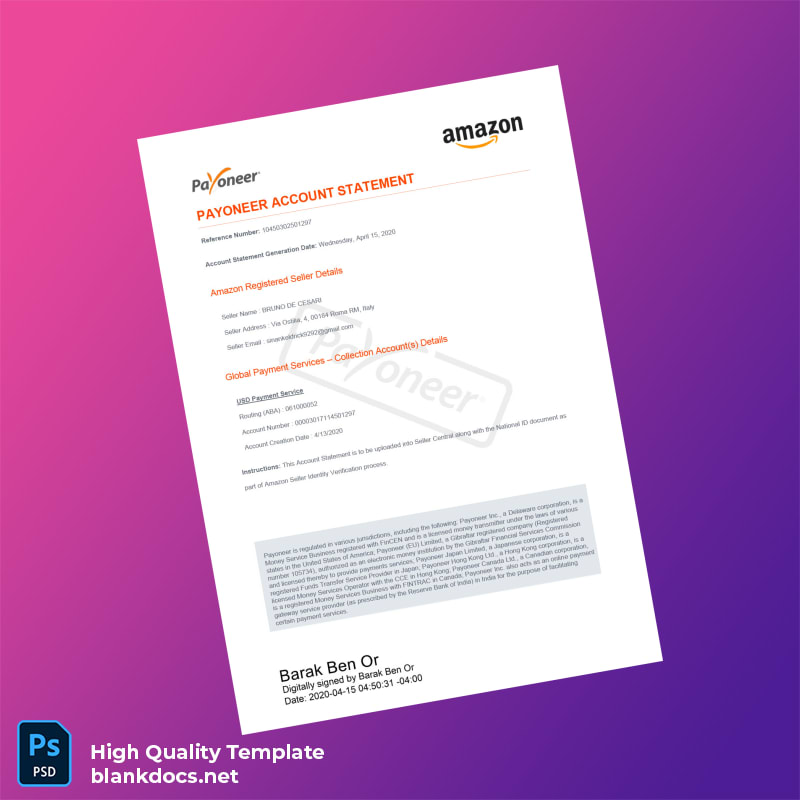 Are you overwhelmed by the need for a professional-grade bank statement? The Italy Payoneer Account Statement Template is here to alleviate your stress, providing a simple yet effective solution for your financial documentation needs.