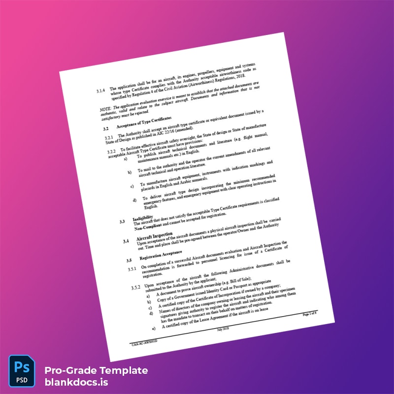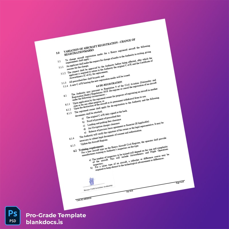 Kenya CAA Aircraft Registration Certificate Template (Word/PDF) 6 page