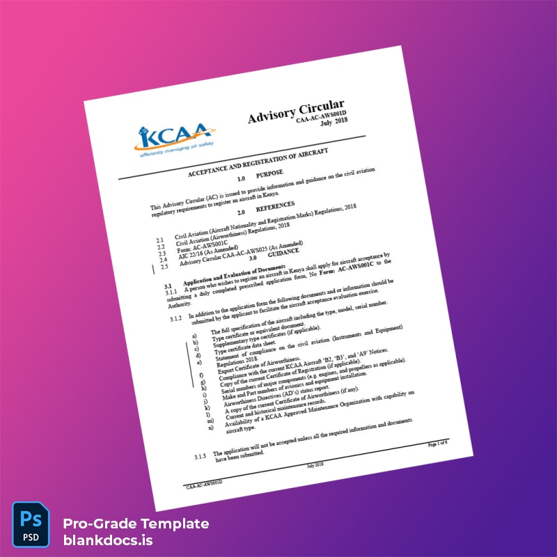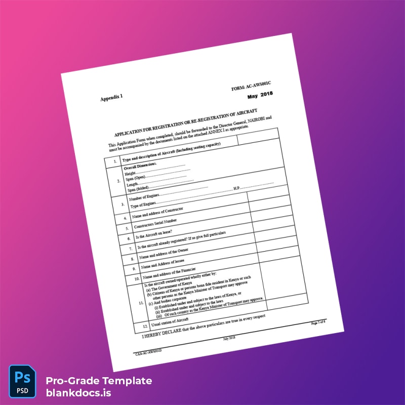 Get the Kenya CAA Aircraft Registration Certificate Template (Word & PDF) for fast, professional, and editable compliance documentation.