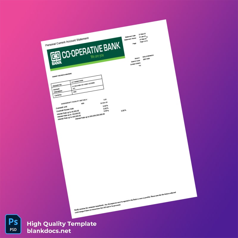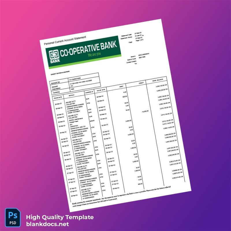 Managing financial documents can be a daunting task, especially when you need to present authentic statements quickly. The Kenya Co-Operative Bank Bank Statement Template in both Word and PDF formats is designed to simplify your experience, ensuring you have a reliable tool at your fingertips.