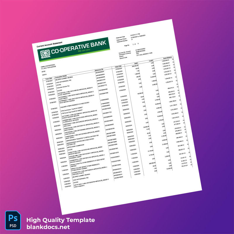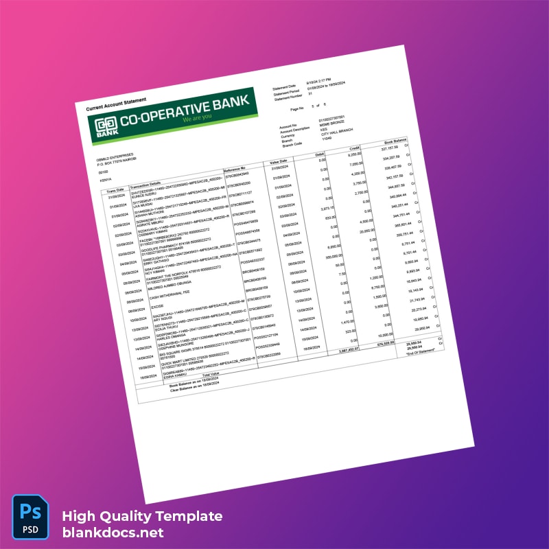 Product Title: Kenya Cooperative Bank Account Statement Template