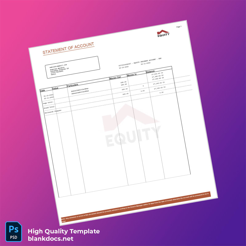 Kenya Equity Bank Statement Template – Editable and Professional