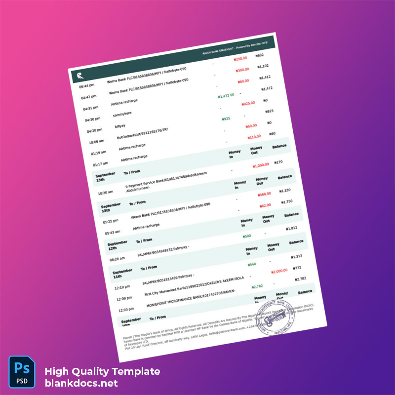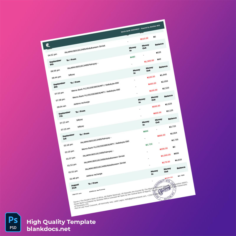 Nigeria Raven Bank Statement Template: Your Complete Solution for Editable Financial Documents