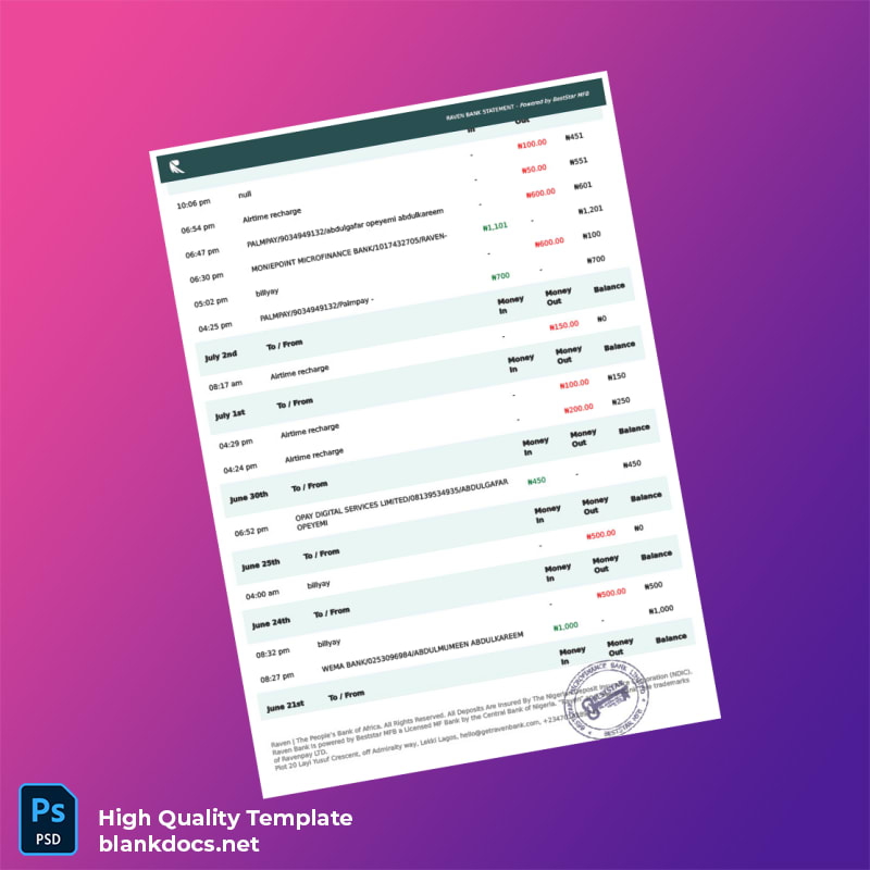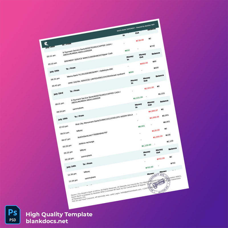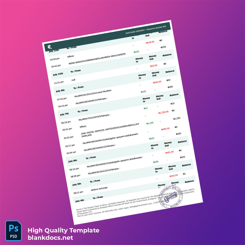 Revamp Your Financial Documentation with the Nigeria Raven Bank Statement Template