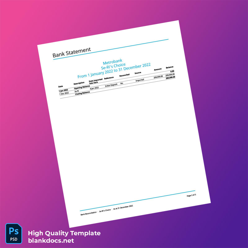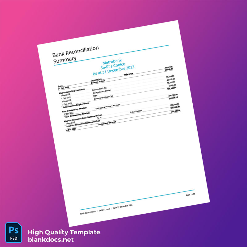 Be the first to review “Philippines Metrobank Bank Reconciliation Template in Word and PDF formats 3 page”