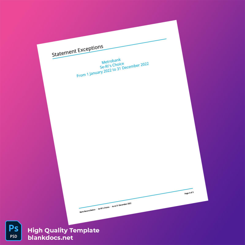 Philippines Metrobank Bank Reconciliation Template in Word and PDF formats 3 page