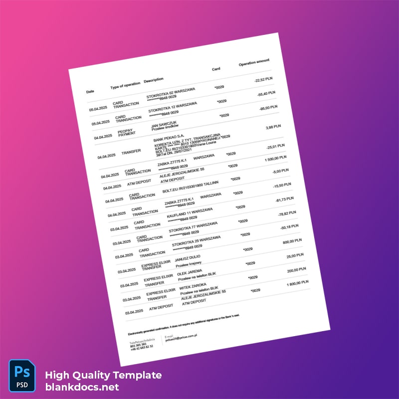 Poland Bank Pekao S A Billing Statement Template in Word and PDF Formats