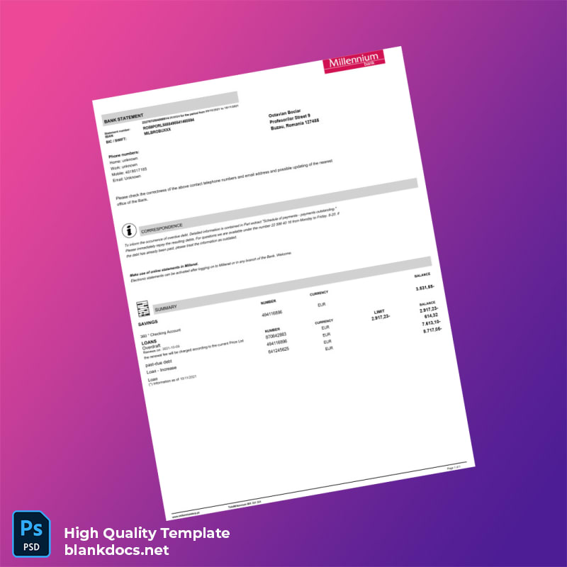Don’t let a lost document hold you back. Purchase your Poland Millenium Bank Statement Template today and turn your paperwork issues into a memory. It’s time to regain control of your documentation!
