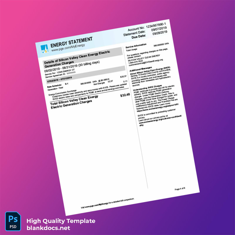 Silicon Valley Clean Energy Editable Utility Bill Template in Word and PDF Formats