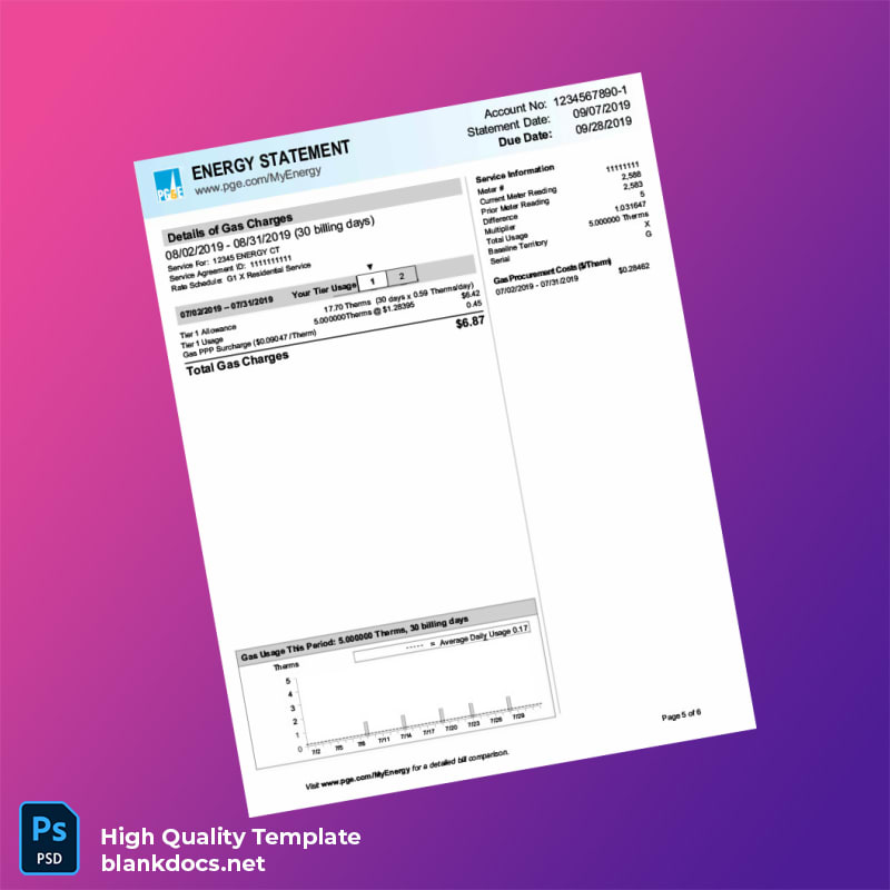 Upon purchasing, get immediate access to the utility bill PDF file download, enabling you to resolve your documentation needs without waiting.
