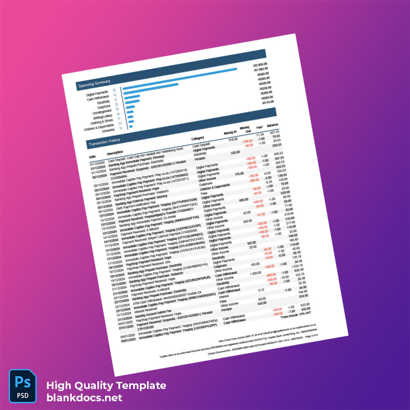 South Africa Crestina Bank Statement Template in Word and PDF formats 4 page