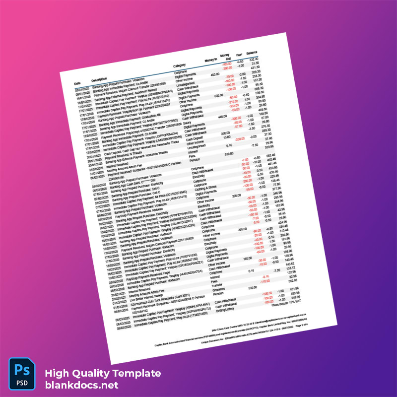 Our South Africa Crestina Bank Statement Template comes packed with features tailored to meet your needs: