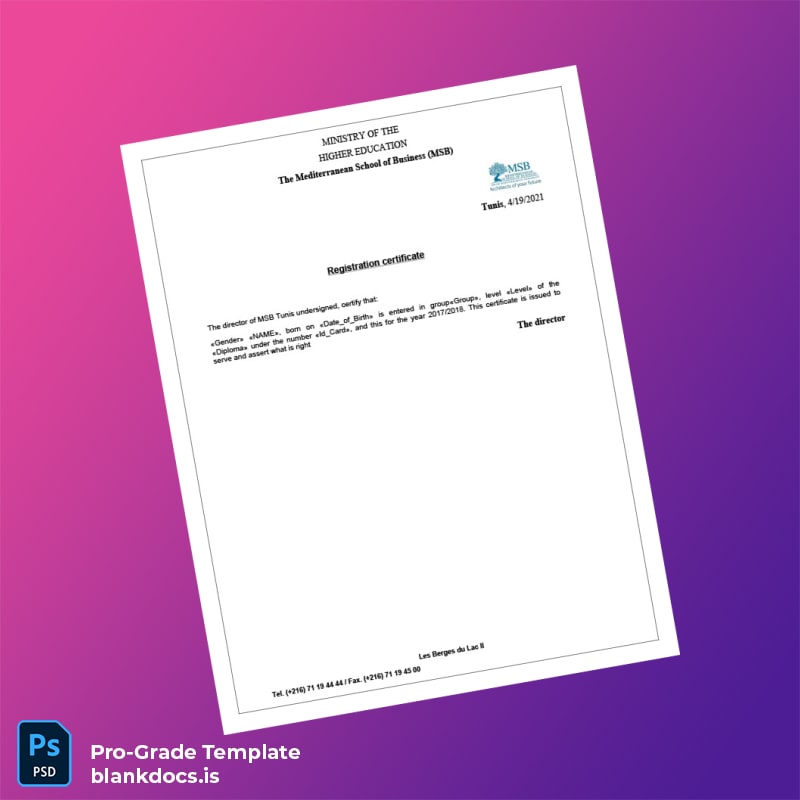 Streamline Your Business Registration with the Tunisia Mediterranean School of Business Registration Certificate Template