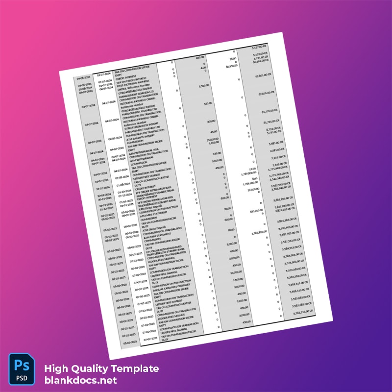 Unlock seamless banking transactions with our Uganda 32111 Savings General Personal Ordinary UGX Bank Statement Template! Designed for busy professionals, this editable template helps you manage your finances efficiently without hassle.