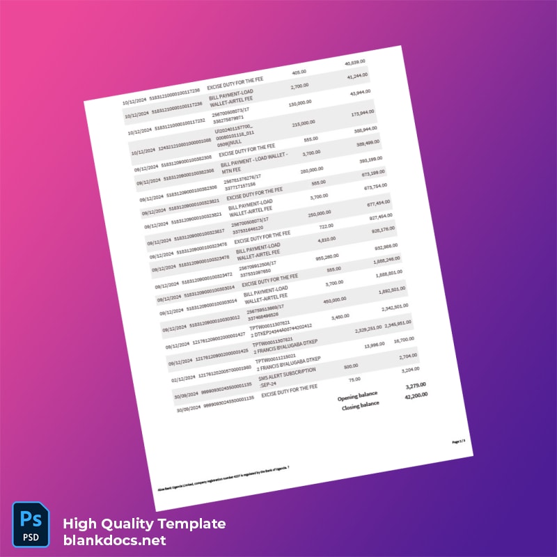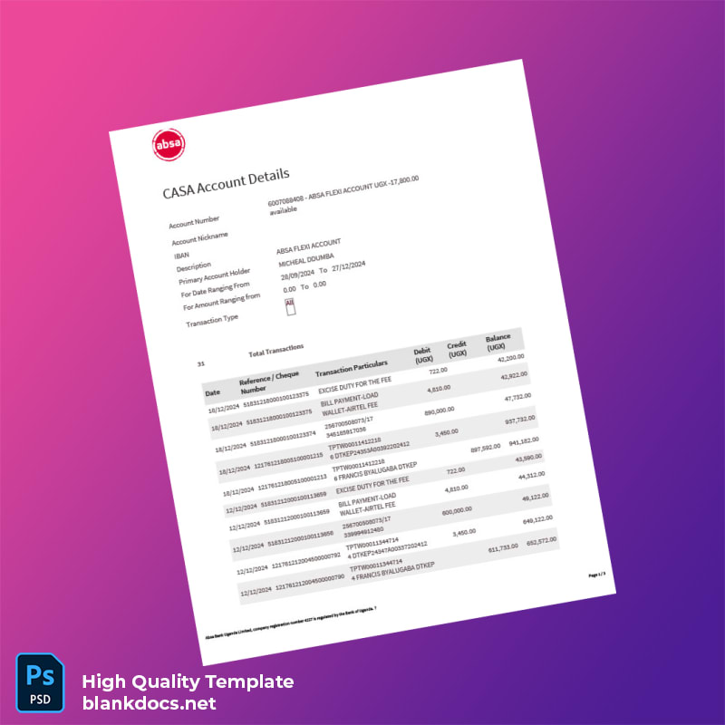 Uganda Absa Bank Statement Template in Word and PDF formats 3 page