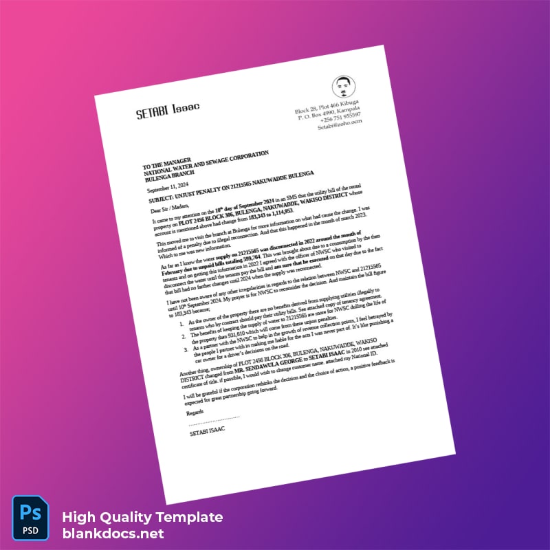 - Includes all required fonts and formatting to maintain authenticity and a uniform corporate appearance of Uganda National Water And Sewage Corporation utility bills.