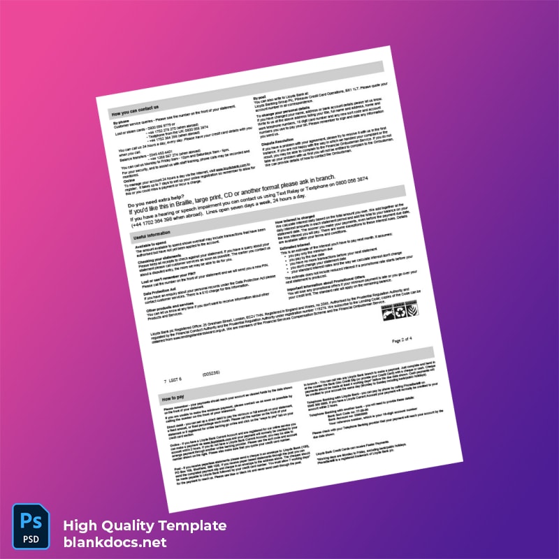 UK Lloyds Bank Statement Template in Word and PDF Formats