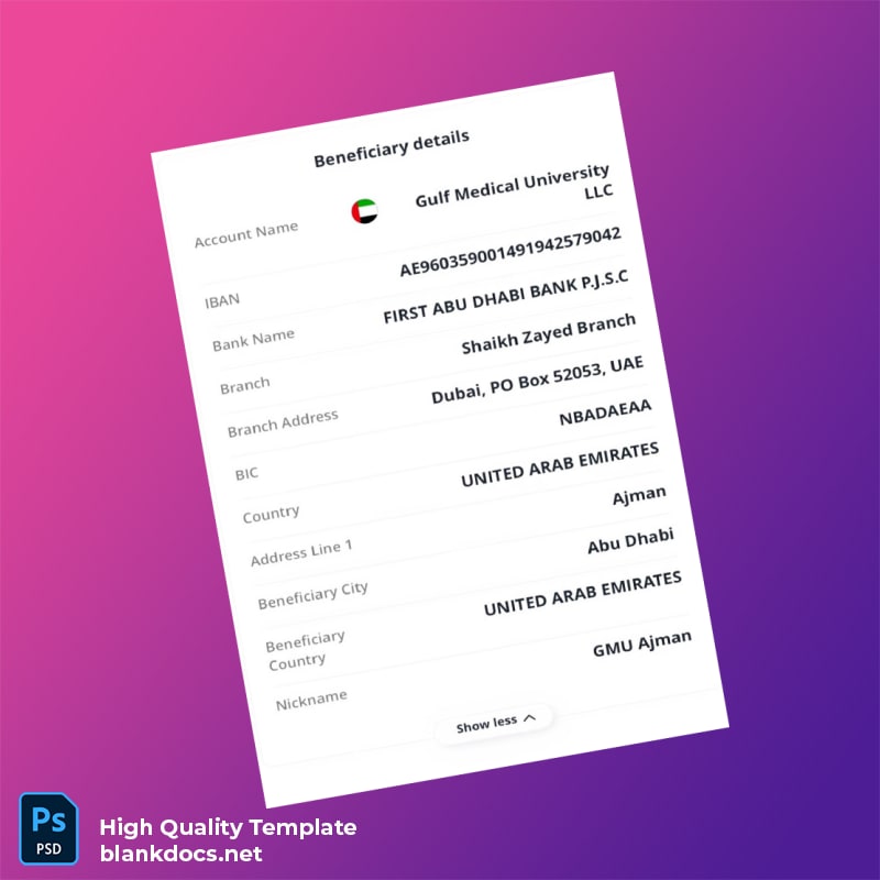 United Arab Emirates Gulf M-1 Editable Transfer Receipt Template