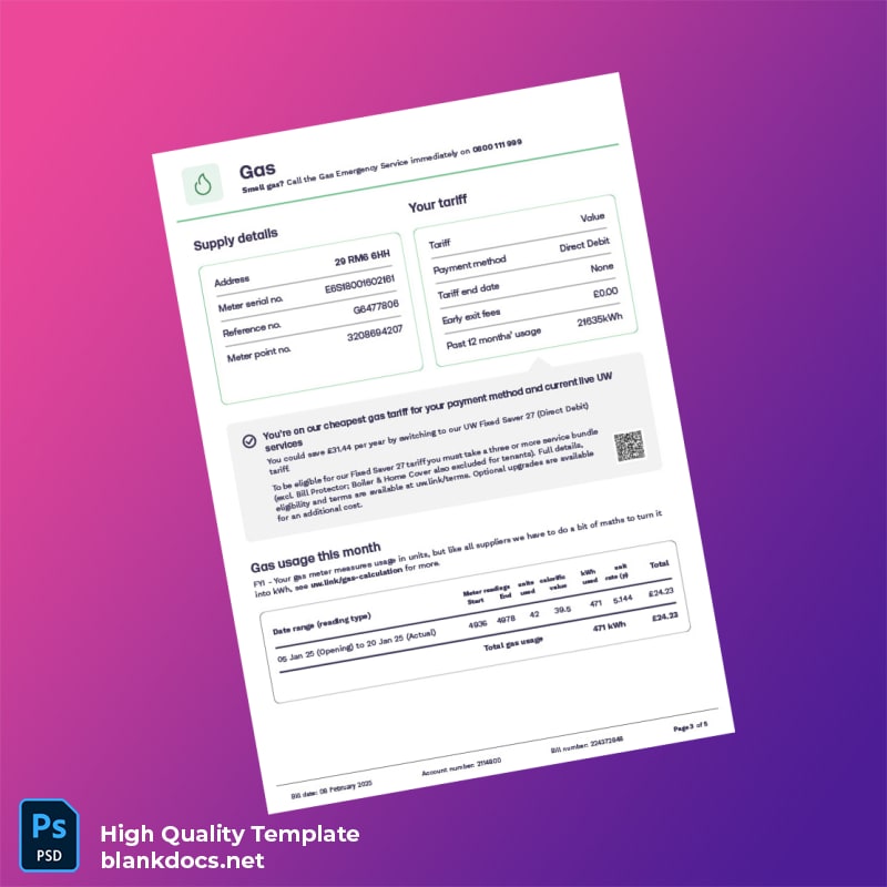 United Kingdom UW Editable Utility Bill Template: Your Fast and Professional Proof of Address Solution