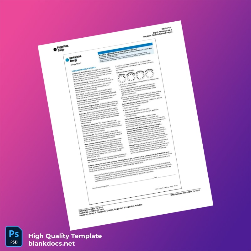 United States CenterPoint Energy Editable Utility Bill Template in Word and PDF Formats