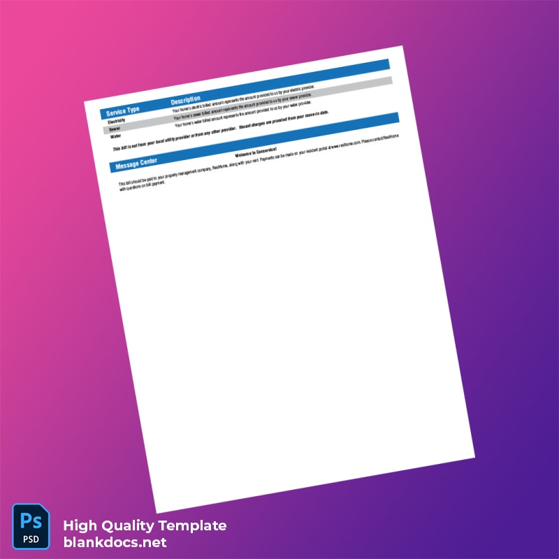 This blank utility bill template can also be adapted for electricity bills or other utilities, useful for broader applications including online utility bill proof of address or electricity bill generator online.