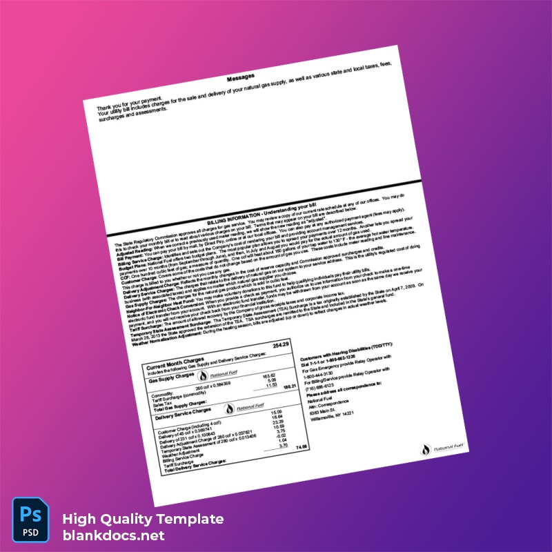 United States NATIONAL FUEL GAS DISTRIBUTION CORPORATION Editable Gas Bill Template in Word and PDF Formats