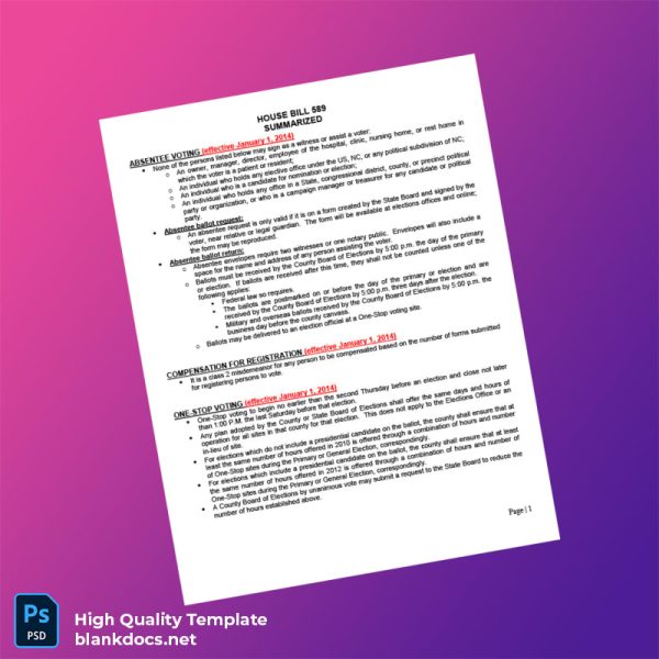 Don’t let missing or non-compliant documents slow down your workflow. Download the United States North Carolina General Assembly Editable Voting Union Summary Template today and experience the ease of a professional, editable utility bill template designed with your specific needs in mind. Visit our utility bill template category to explore related templates and streamline your documentation process now.