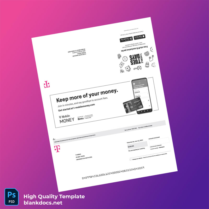 United States T-Mobile US Editable Summary Bill Template in Word and PDF Formats