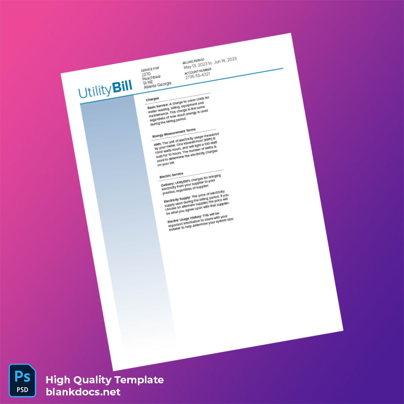 Efficiently create an authentic-looking utility bill for professional use with the United States UtilityBill Editable Electricity Bill Template. Available in both Word and PDF formats, this versatile and user-friendly template is designed to provide a reliable utility bill proof of address solution that adapts seamlessly to your professional needs.
