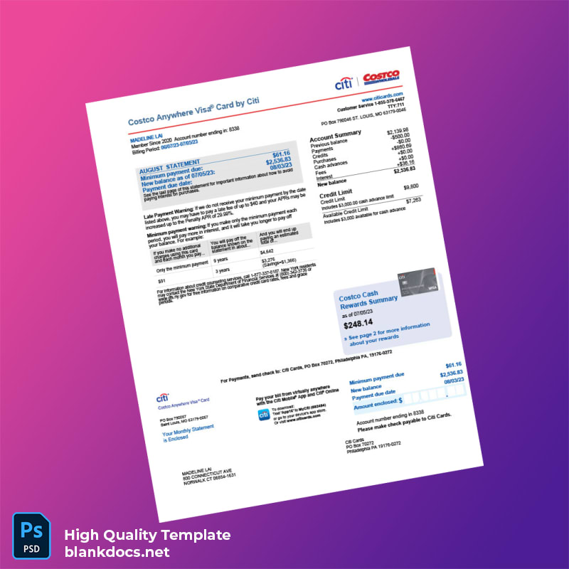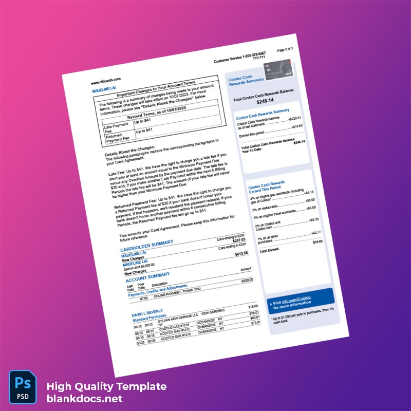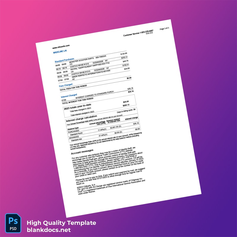 USA Citi Bank Statement Template in Word and PDF formats 4 page