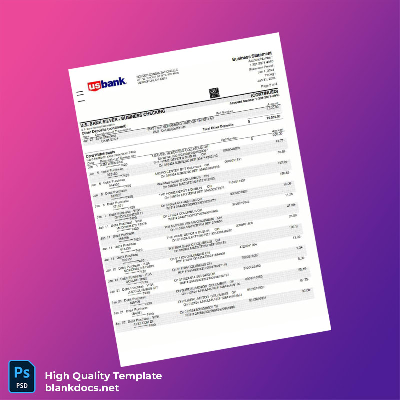 USA US Bank Bank Statement Template in Word and PDF formats 5 page